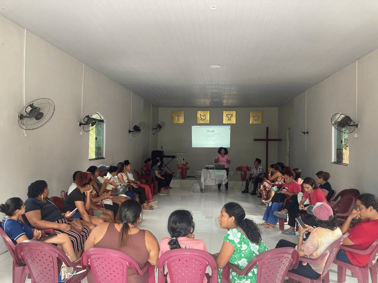 No período da tarde, os alunos realizaram a oficina de manejo de dados em ambiente digital compartilhado em uma igreja evangélica da comunidade.